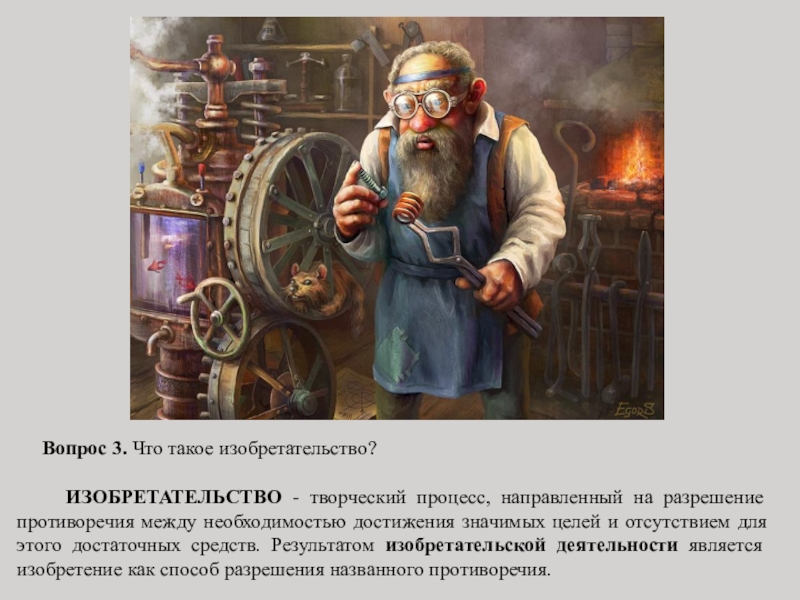 Слайд 4 Вопрос 3. Что такое изобретательство?