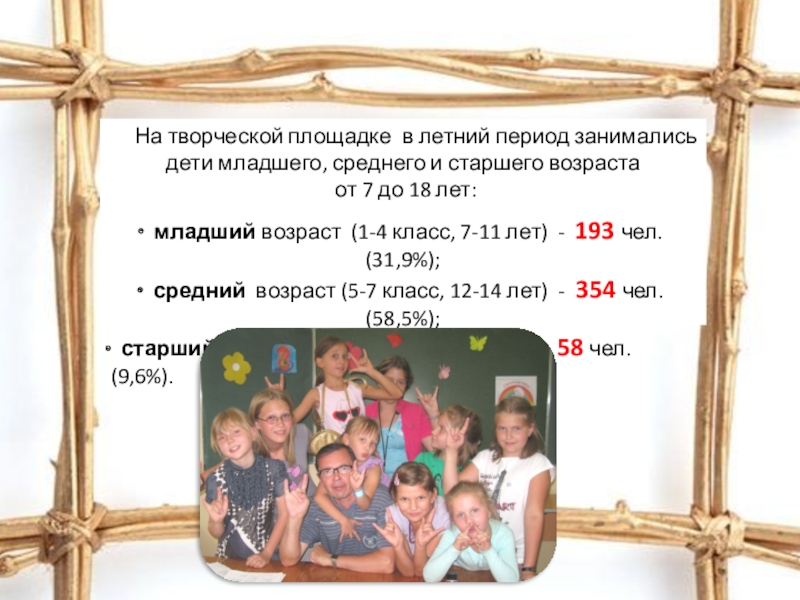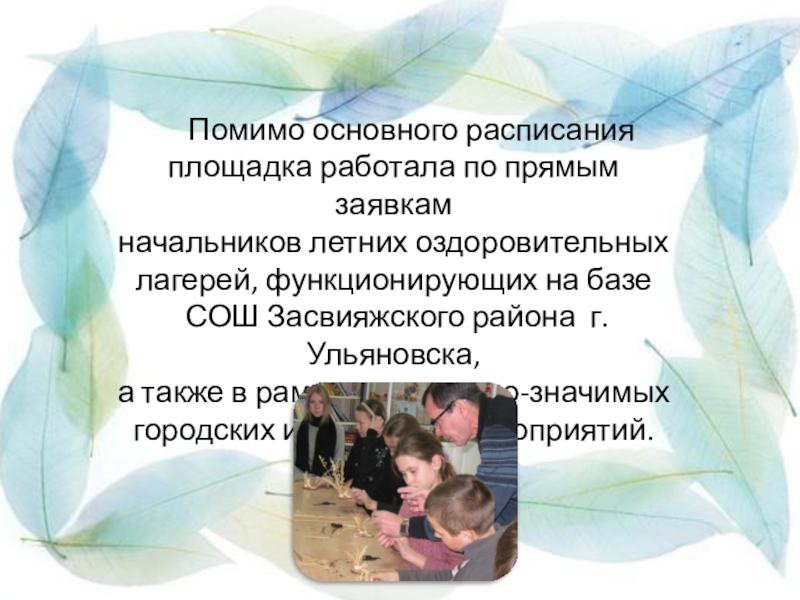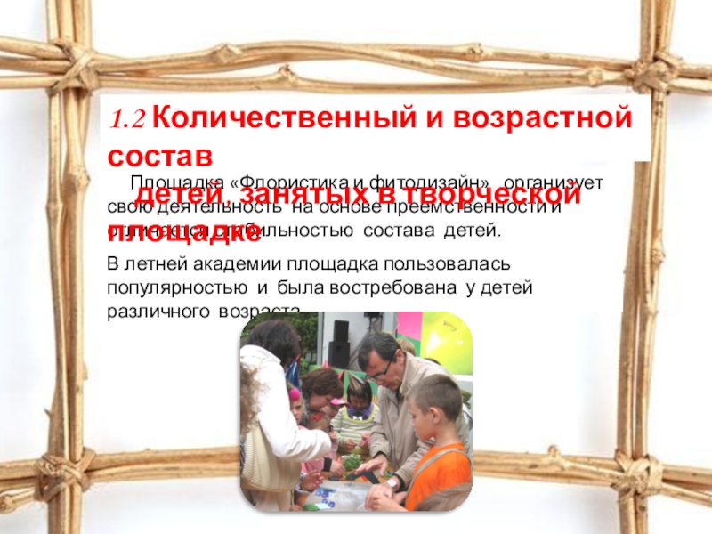 Слайд 8 На творческой площадке в летний период занимались дети