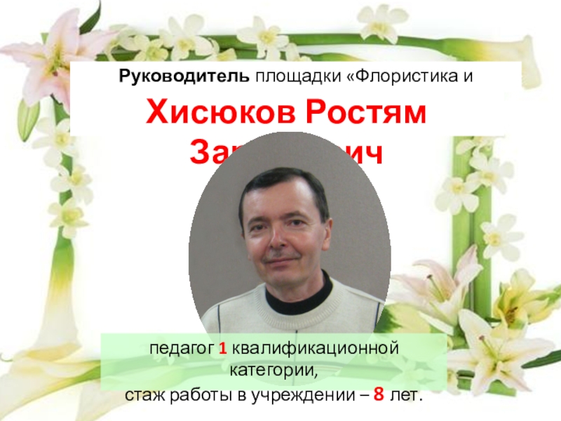 Слайд 6Руководитель площадки «Флористика и фитодизайн»-