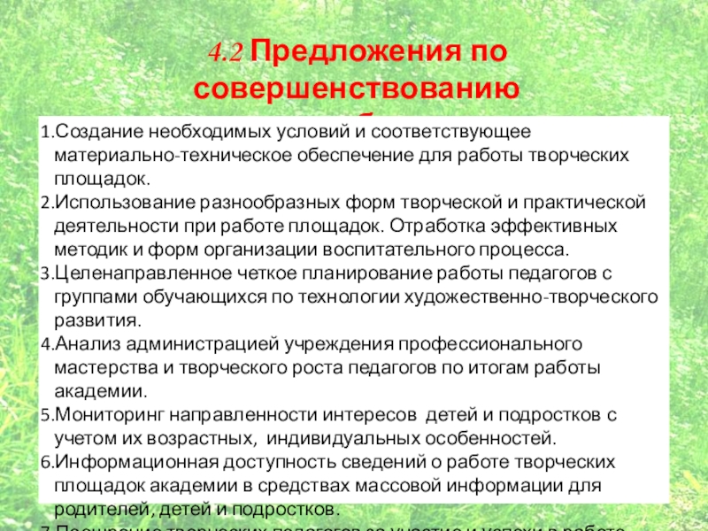 Слайд 264.2 Предложения по совершенствованию организации работы площадок академии