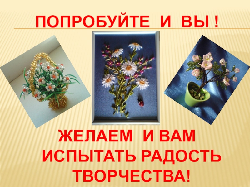 ПОПРОБУЙТЕ И ВЫ !ЖЕЛАЕМ И ВАМ ИСПЫТАТЬ РАДОСТЬ ТВОРЧЕСТВА!
