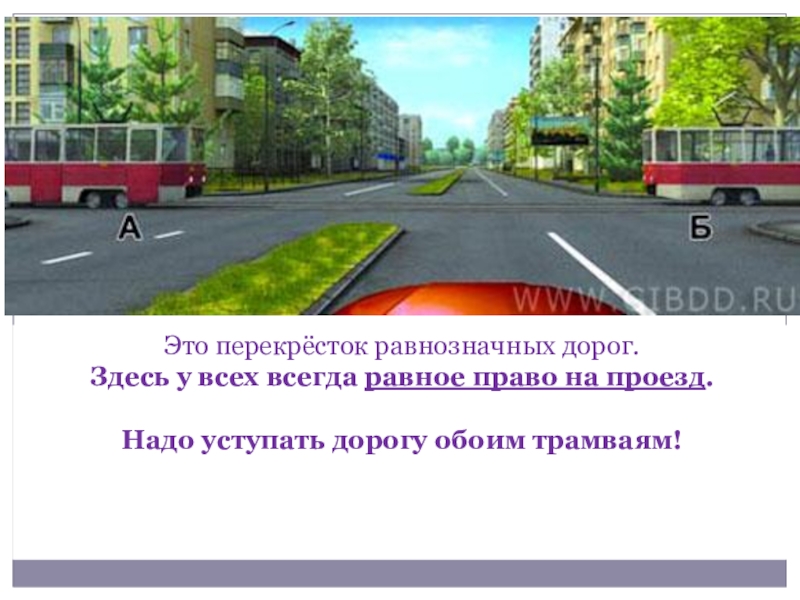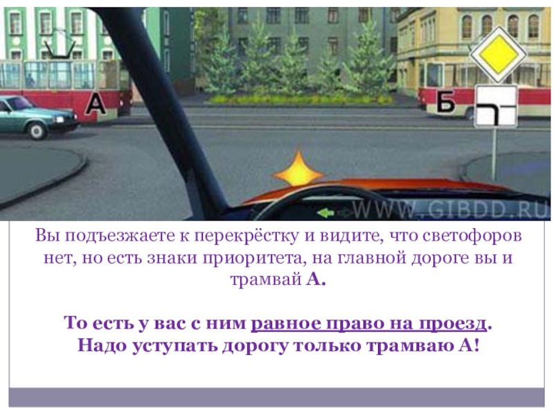 Слайд 16Вы подъезжаете к перекрёстку и видите, что светофоров нет, но есть