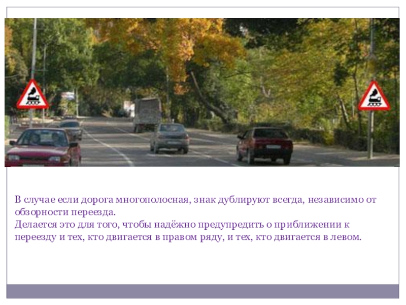 Слайд 13Если обзорность переезда ограничен, в этом случае на дороге