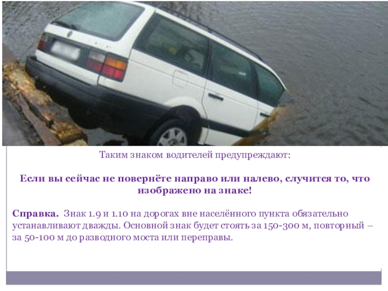 Слайд 26Знак 1.10 – Выезд на набережную.
