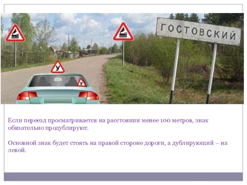 Если переезд просматривается на расстоянии менее 100 метров, знак обязательно продублируют.