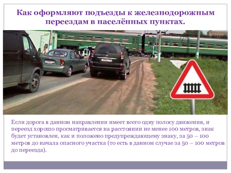 Слайд 9Как оформляют подъезды к железнодорожным переездам в населённых пунктах.