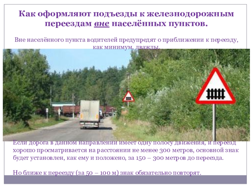 Слайд 12Как оформляют подъезды к железнодорожным переездам вне населённых пунктов.