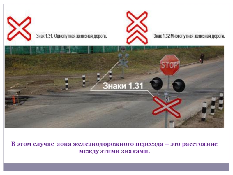 железнодорожных путей, и в этом случае зона железнодорожного переезда – это расстояние между шлагбаумами.
