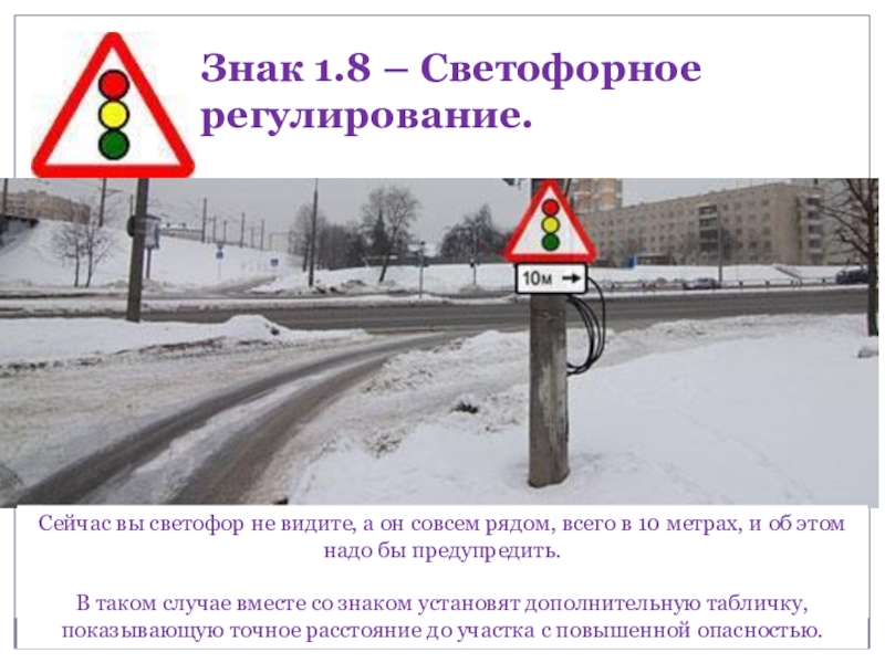 В таком случае вместе со знаком установят дополнительную табличку, показывающую точное расстояние до участка с повышенной опасностью.