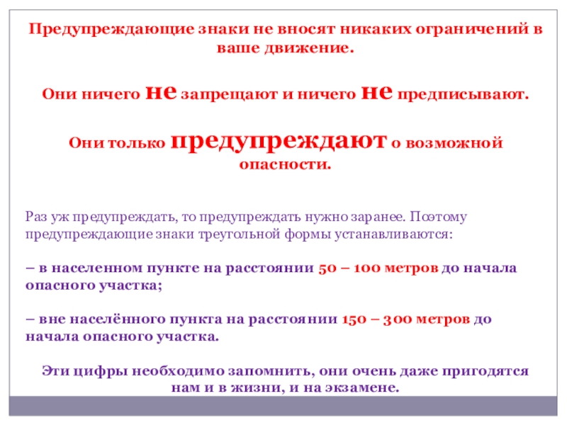 Слайд 3Предупреждающие знаки не вносят никаких ограничений в ваше движение.
