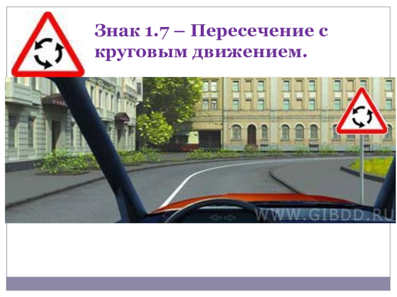 Слайд 20Знак 1.7 – Пересечение с круговым движением.