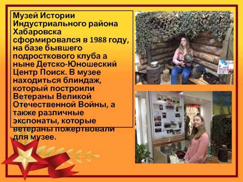 Также дети и подростки могут посетить Музей Истории Индустриального района, где существует такая программа, как «Виртуальная прогулка по улицам района» и принимать участие в различных мероприятиях патриотической направленности.