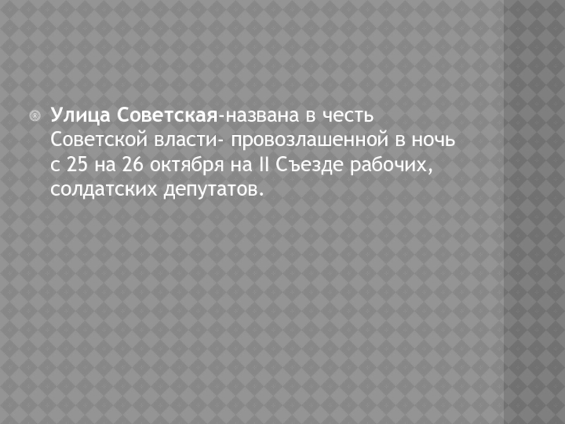 Слайд 12Улица Советская-названа в честь Советской власти- провозлашенной в ночь с 25