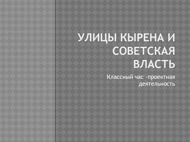 Улицы Кырена и Советская властьКлассный час –проектная деятельность