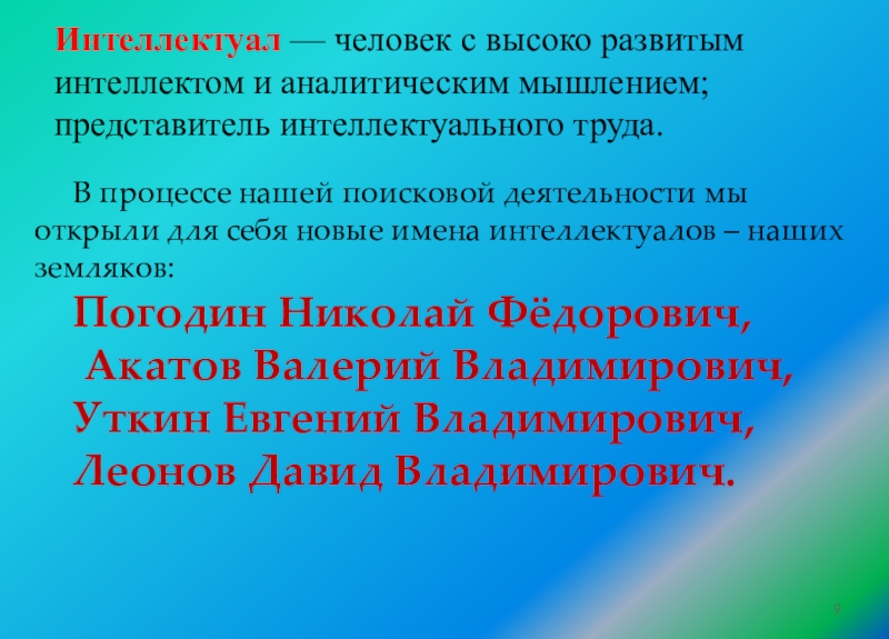 В процессе нашей поисковой деятельности мы открыли для себя новые имена интеллектуалов – наших земляков: