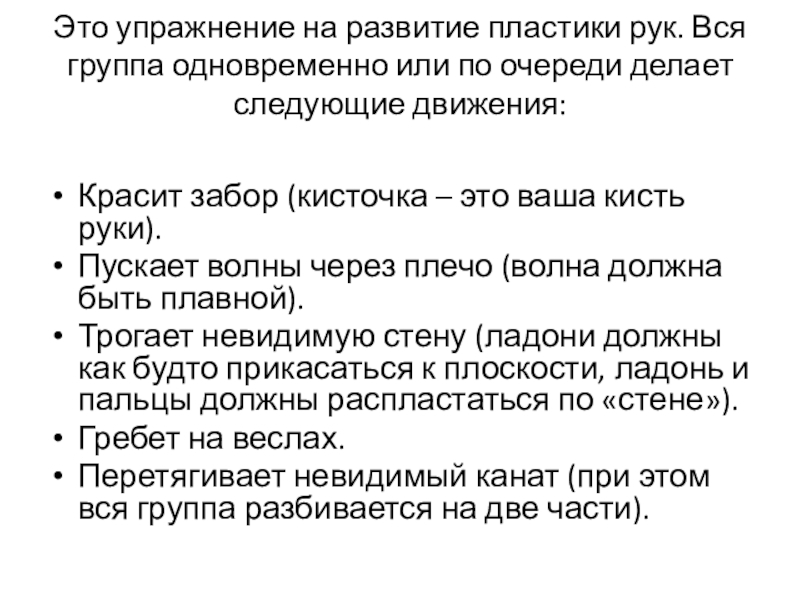 Трогает невидимую стену (ладони должны как будто прикасаться к плоскости, ладонь и пальцы должны распластаться по «стене»).