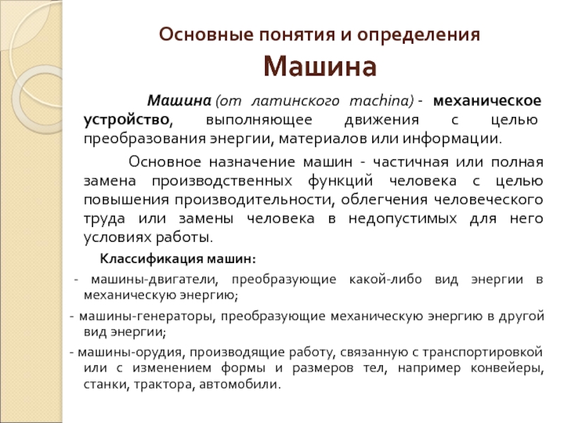 механическое устройство, выполняющее движения с целью преобразования энергии, материалов или информации.
