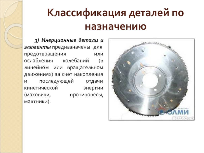 для предотвращения или ослабления колебаний (в линейном или вращательном движениях) за счет накопления и последующей отдачи кинетической энергии (маховики, противовесы, маятники).