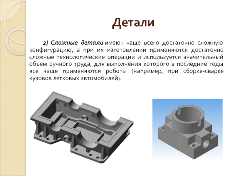 2) Сложные детали имеют чаще всего достаточно сложную конфигурацию,