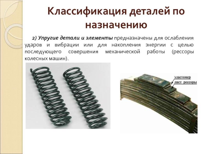 для ослабления ударов и вибрации или для накопления энергии с целью последующего совершения механической работы (рессоры колесных машин).