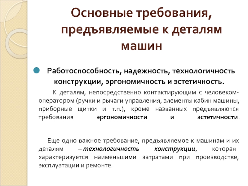 Слайд 19Основные требования, предъявляемые к деталям машин
