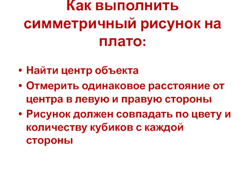 Слайд 11Как выполнить симметричный рисунок на плато: