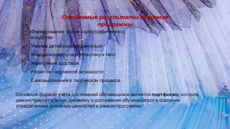 Основной формой учёта достижений обучающихся является портфолио, которое демонстрирует усилия, динамику и достижения обучающегося в освоении определенных духовных ценностей в рамках программы