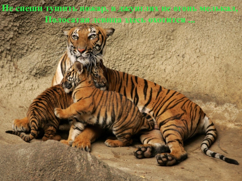 Слайд 12Не спеши тушить пожар, в джунглях не огонь мелькал, Полосатая девица здесь