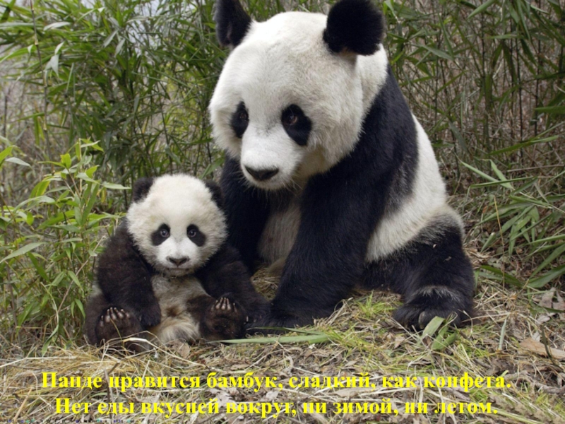 Слайд 19Панде нравится бамбук, сладкий, как конфета.