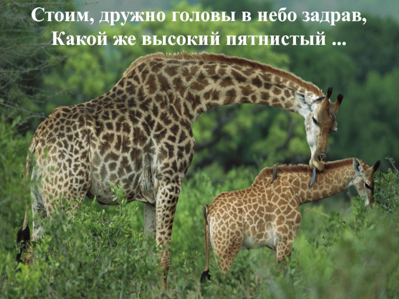 Слайд 7Стоим, дружно головы в небо задрав, Какой же высокий пятнистый ...