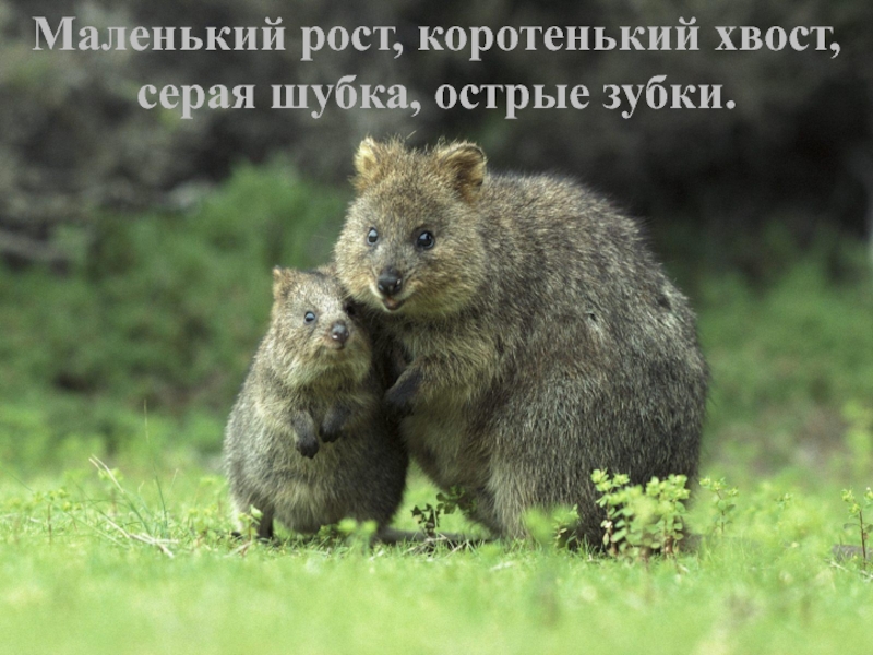 Слайд 2Маленький рост, коротенький хвост, серая шубка, острые зубки.
