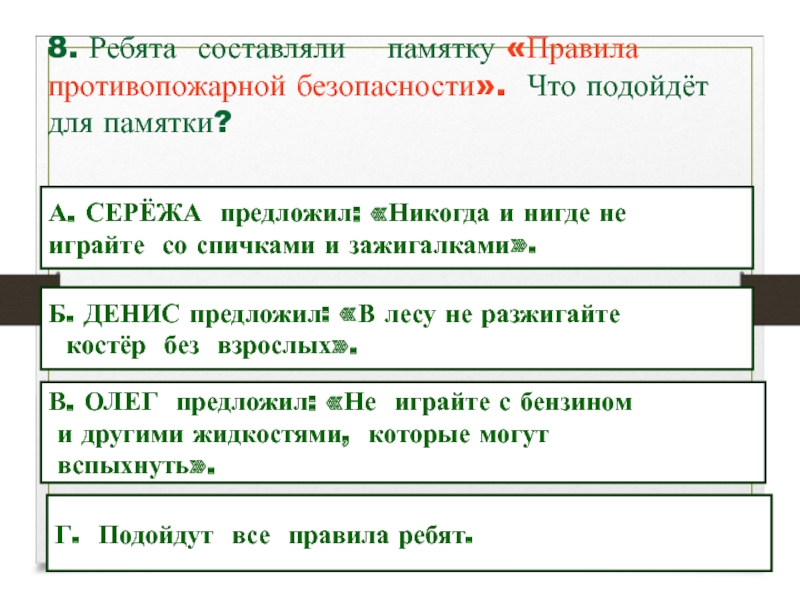 В. ОЛЕГ предложил: «Не играйте с бензином
