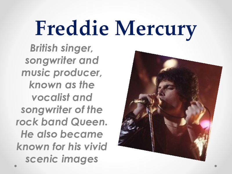 and songwriter of the rock band Queen. He also became known for his vivid scenic images