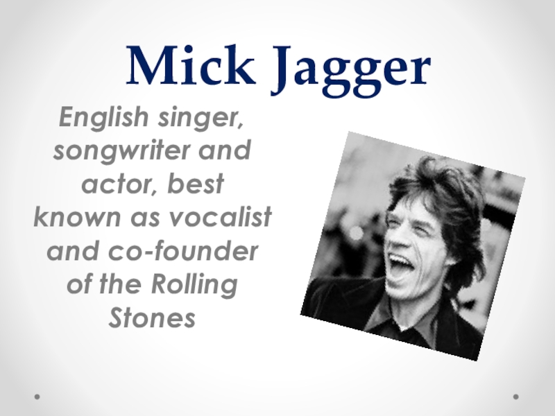 Mick Jagger English singer, songwriter and actor, best known as vocalist and co-founder of the Rolling Stones