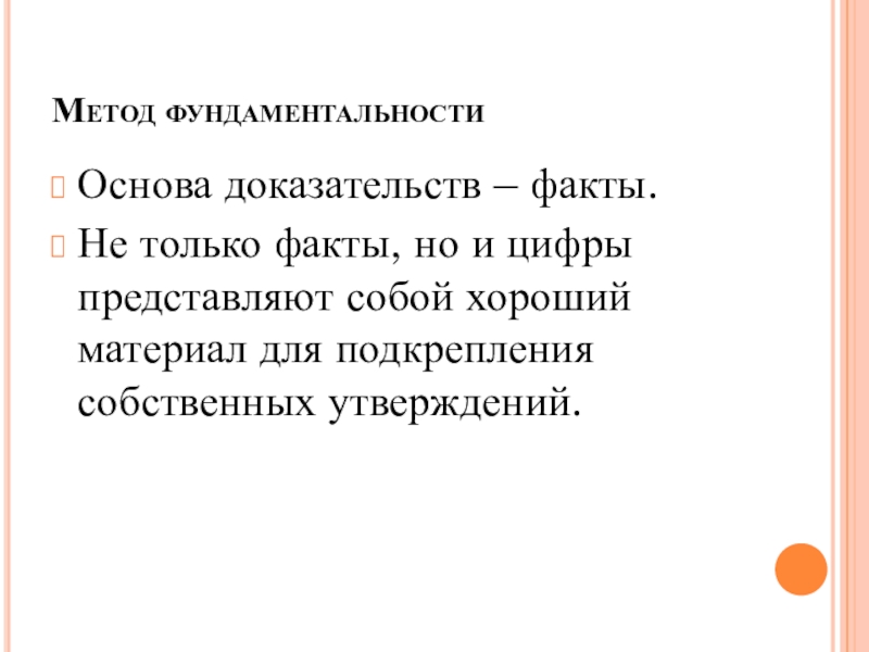 Метод фундаментальности Основа доказательств – факты.Не только факты, но и цифры представляют собой хороший материал для подкрепления