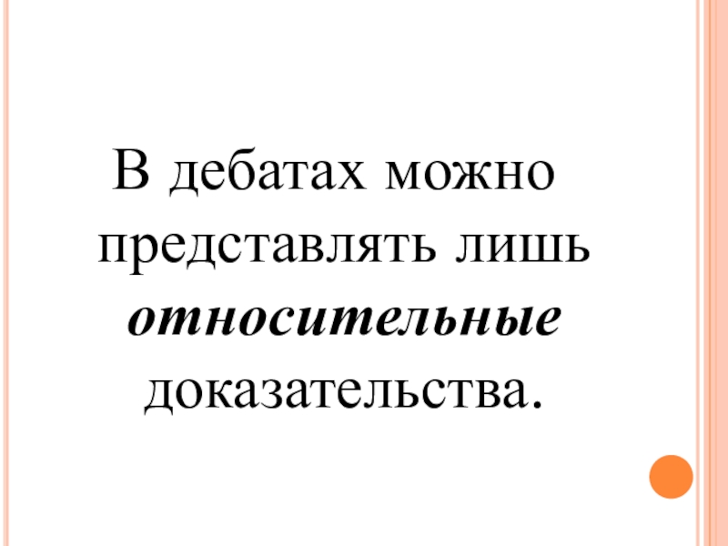 Слайд 5В дебатах можно представлять лишь относительные доказательства.