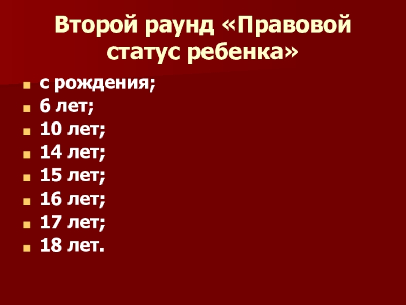 Слайд 4Второй раунд «Правовой статус ребенка»