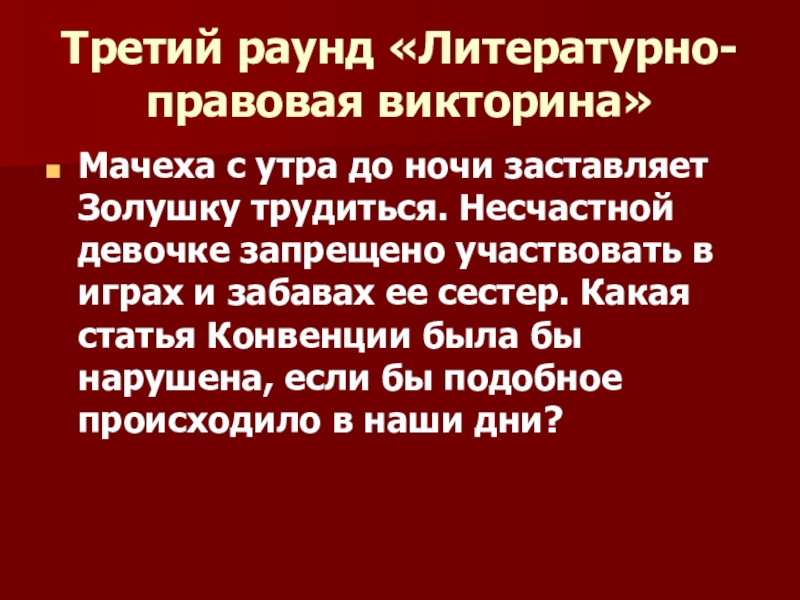 Слайд 12Третий раунд «Литературно-правовая викторина»