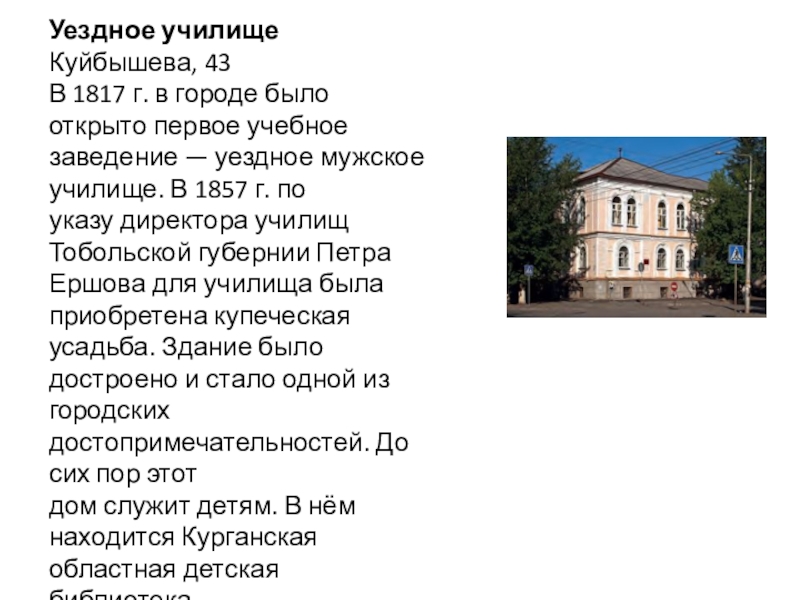 дом служит детям. В нём находится Курганская областная детская библиотека.