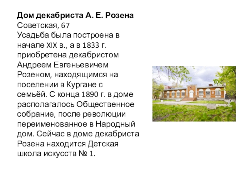 Слайд 63. Дом декабриста А. Е. Розена