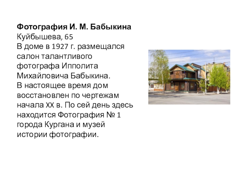 начала XX в. По сей день здесь находится Фотография № 1 города Кургана и музей истории фотографии.