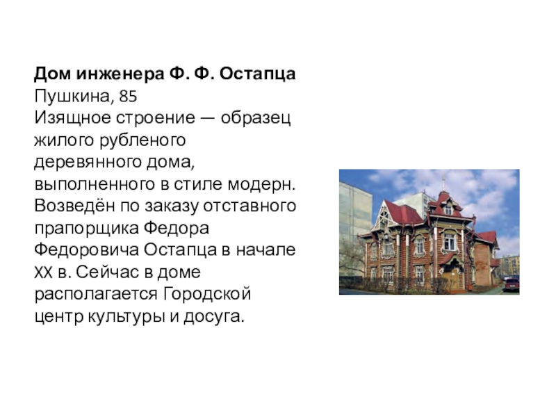 Слайд 84. Дом инженера Ф. Ф. Остапца