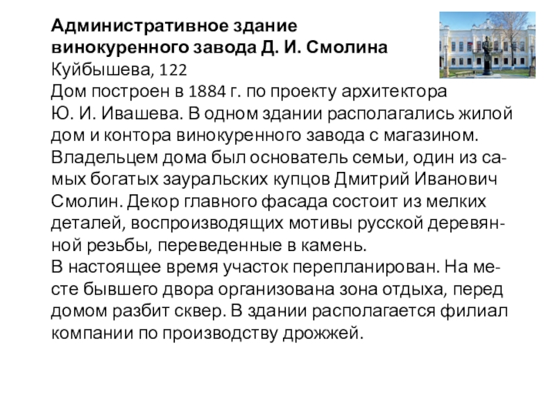 винокуренного завода Д. И. Смолина
