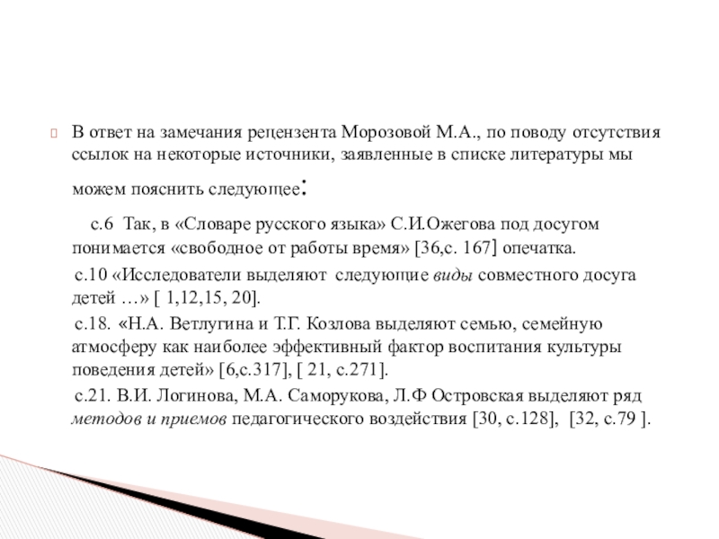Слайд 19В ответ на замечания рецензента Морозовой М.А., по поводу отсутствия ссылок