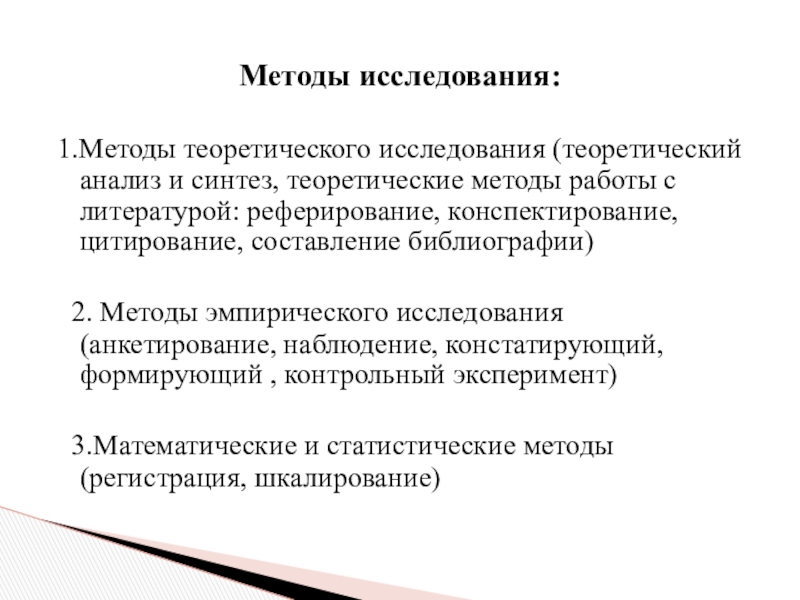Слайд 51.Методы теоретического исследования (теоретический анализ и синтез, теоретические методы работы с