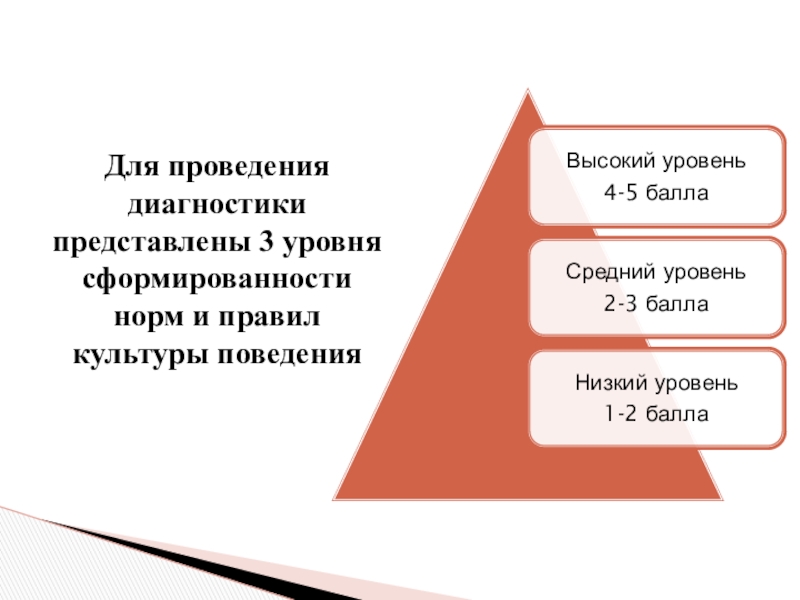 Для проведения диагностики представлены 3 уровня сформированности норм и правил культуры поведения