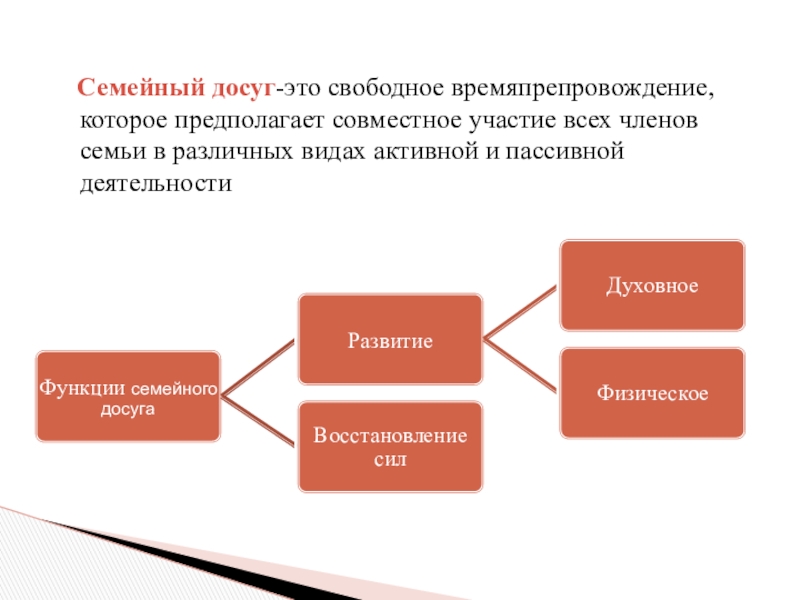 Семейный досуг-это свободное времяпрепровождение, которое предполагает совместное участие всех членов семьи в различных видах активной и пассивной