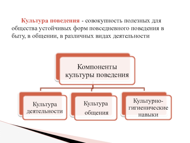 Культура поведения - совокупность полезных для общества устойчивых форм повседневного поведения в быту, в общении, в