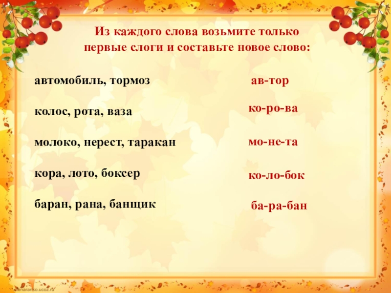 Из каждого слова возьмите только первые слоги и составьте новое слово: