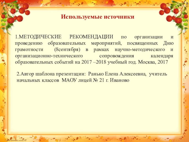 2.Автор шаблона презентации: Ранько Елена Алексеевна, учитель начальных классов МАОУ лицей № 21 г. Иваново
